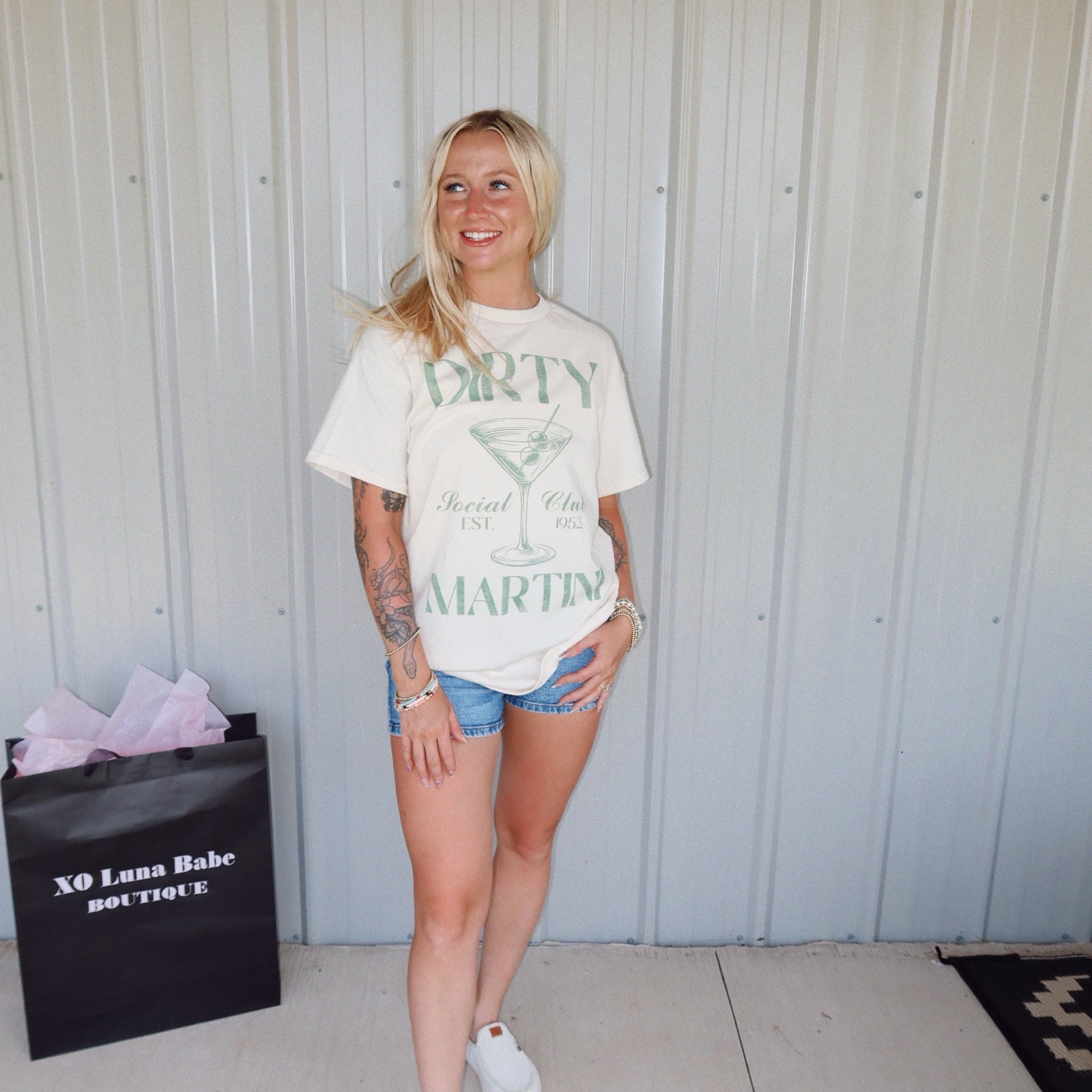 Show off your fun side with the Dirty Martini Graphic Tee, perfectly styled by Morgan at 5’1” in a small/medium. This playful oversized graphic tee adds a splash of personality to any outfit, making it your go-to for casual days or nights out. Comfortable and cool, it’s the perfect way to shake up your wardrobe with a cheeky twist.