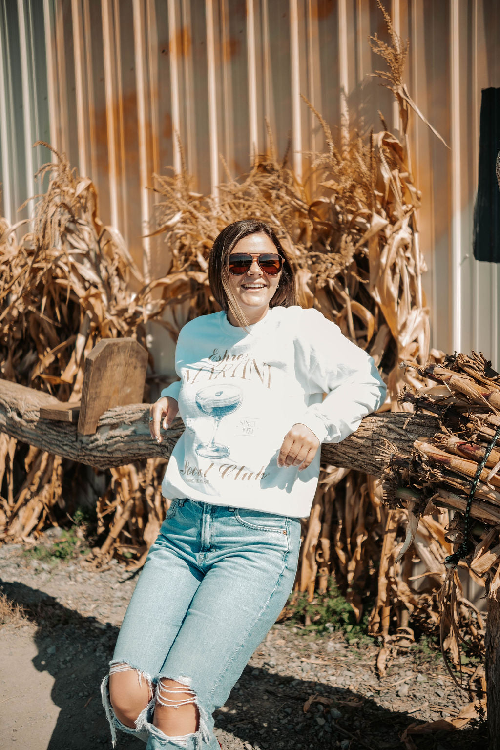 The Espresso Babe Sweater pairs cozy comfort with a playful vibe—perfect for your next coffee date or lounging in style. Demi, standing 5'4", rocks the small/medium size, showing how this sweater gently hugs without feeling tight. Its soft fabric and relaxed fit make every sip of your espresso even sweeter. Get ready to brew up some charm wherever you go!